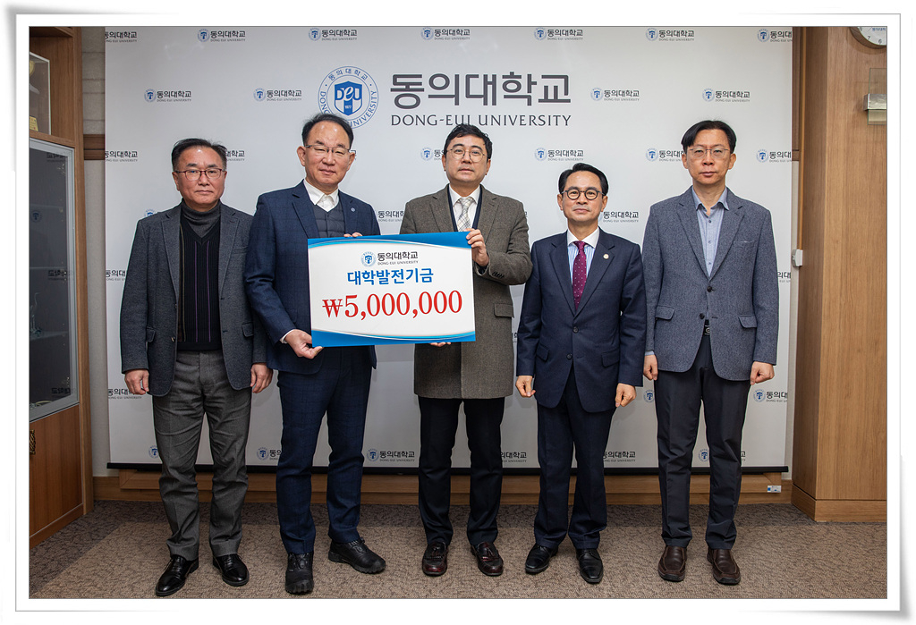 이날 발전기금 전달식에는 원대규 변리사와 동의대 한수환 총장, 이임건 대외부총장, 김치용 대외협력원장, 전숭종 대외협력원 부원장 등이 참석했다.